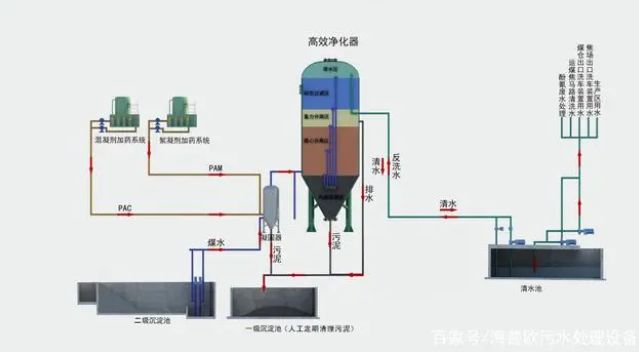 在高懸浮物污水處理中,HPO-XL型高效污水凈化器顯示了較大的技術優(yōu)勢。它無須設置預沉池,可以快速連續(xù)高效地將 SS≤5000mg/L 的污水凈化到 5~30mg/L,該技術最高可以處理 SS≤10000mg/L 的污水,為高濃度含煤污水、灰渣水、礦井污水、砂石骨料沖洗污水、施工污水、高懸浮物污水處理開辟了一條新途徑。